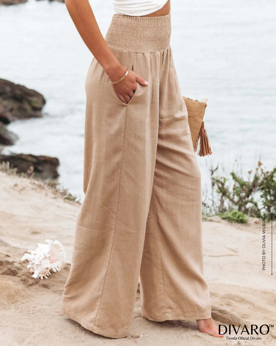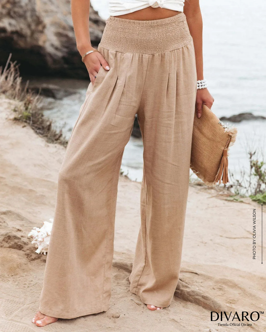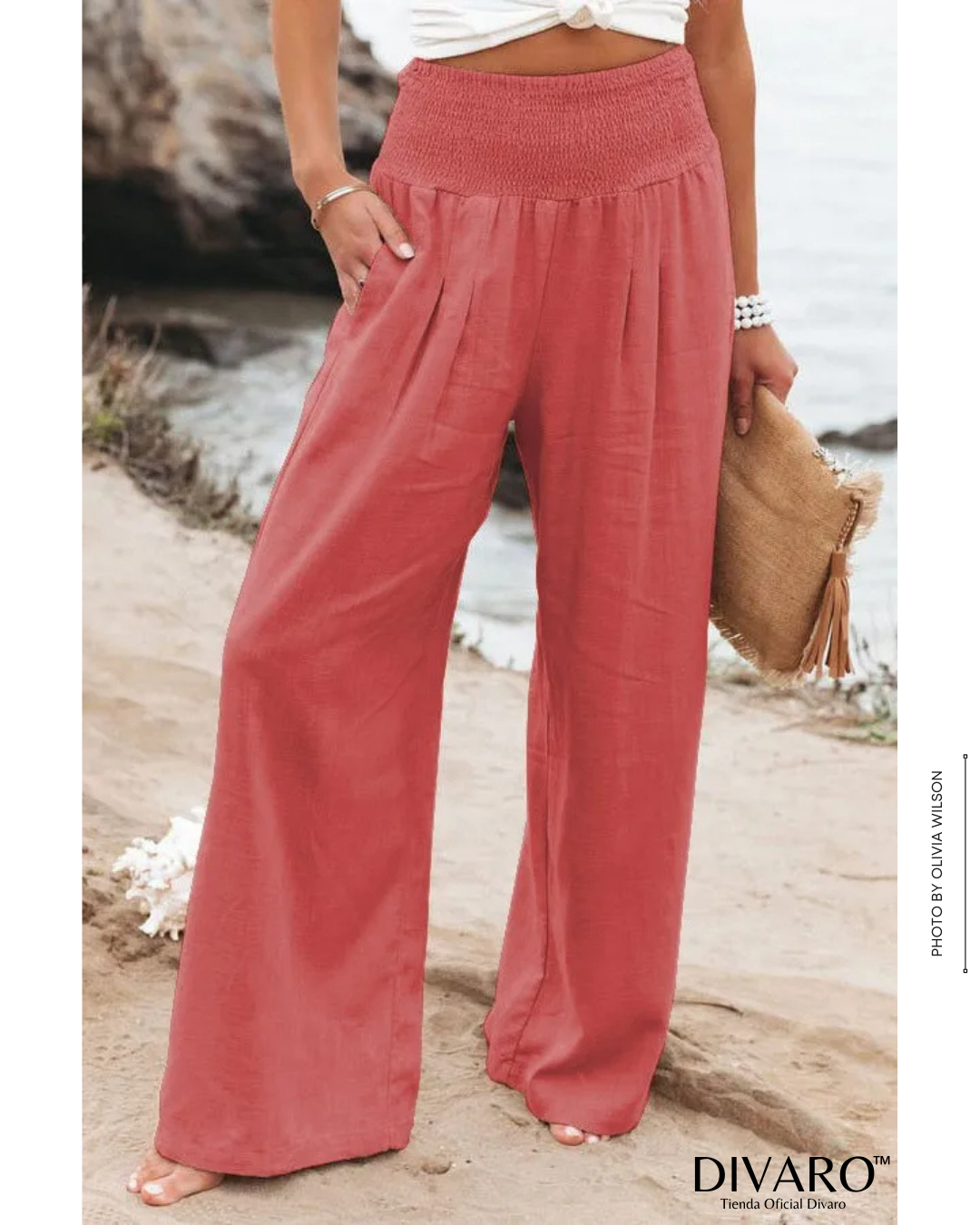 Coral - Pantalones Pierna Ancha Algodón y Lino