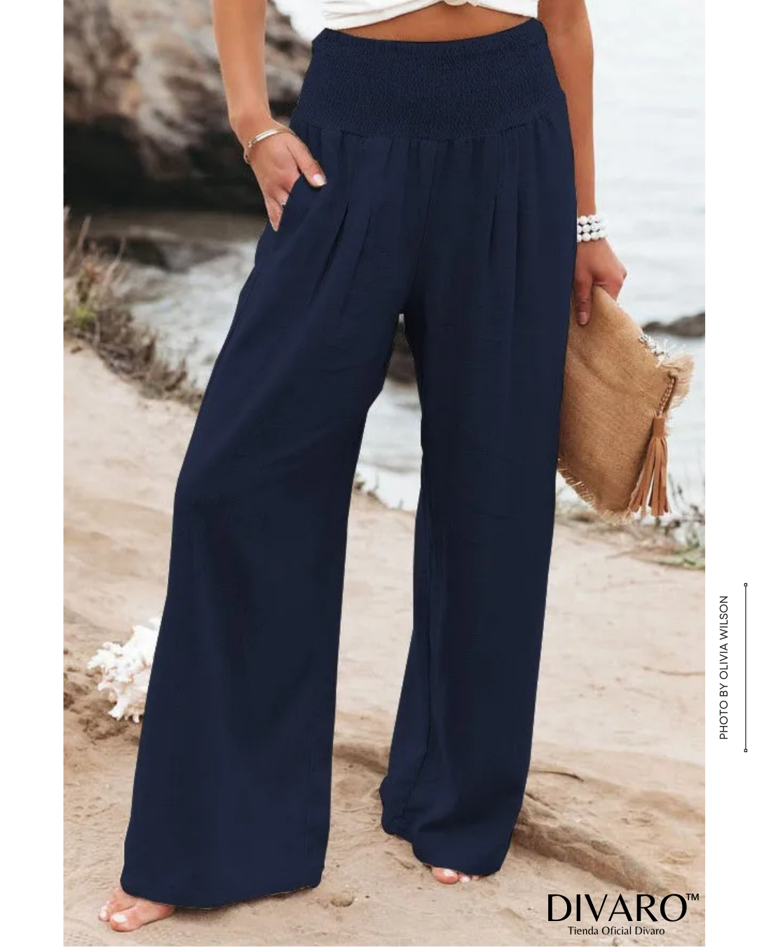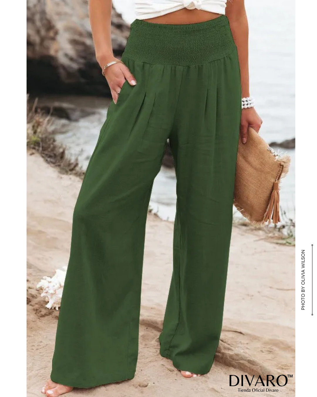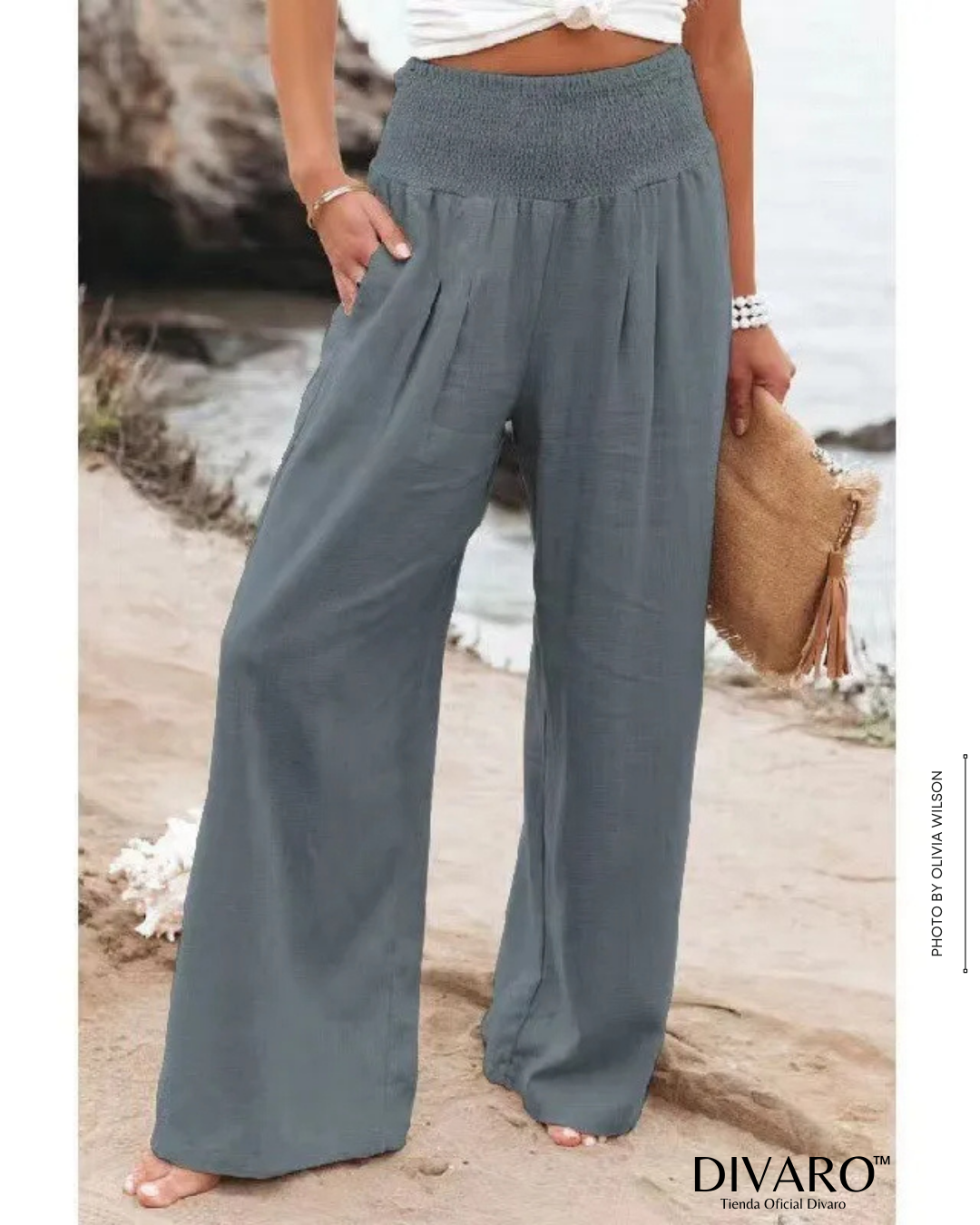 Coral - Pantalones Pierna Ancha Algodón y Lino
