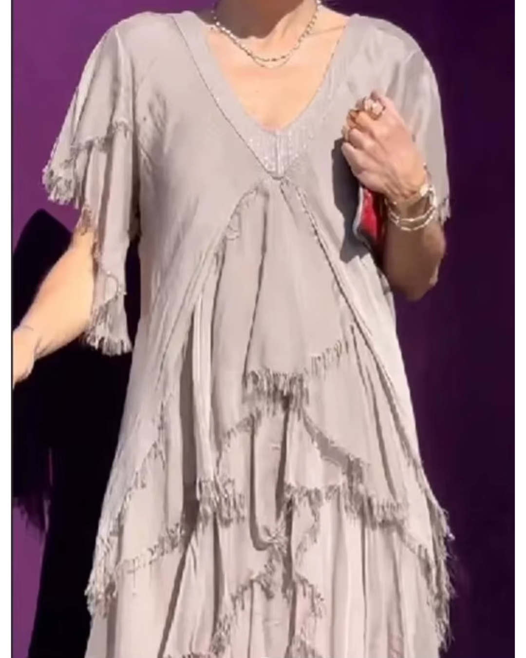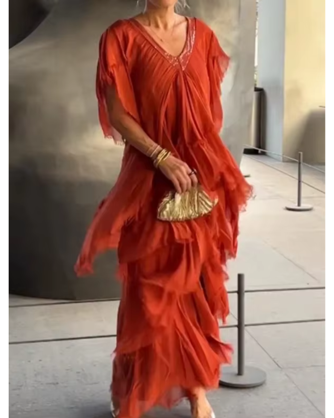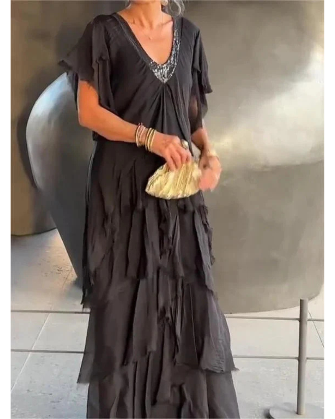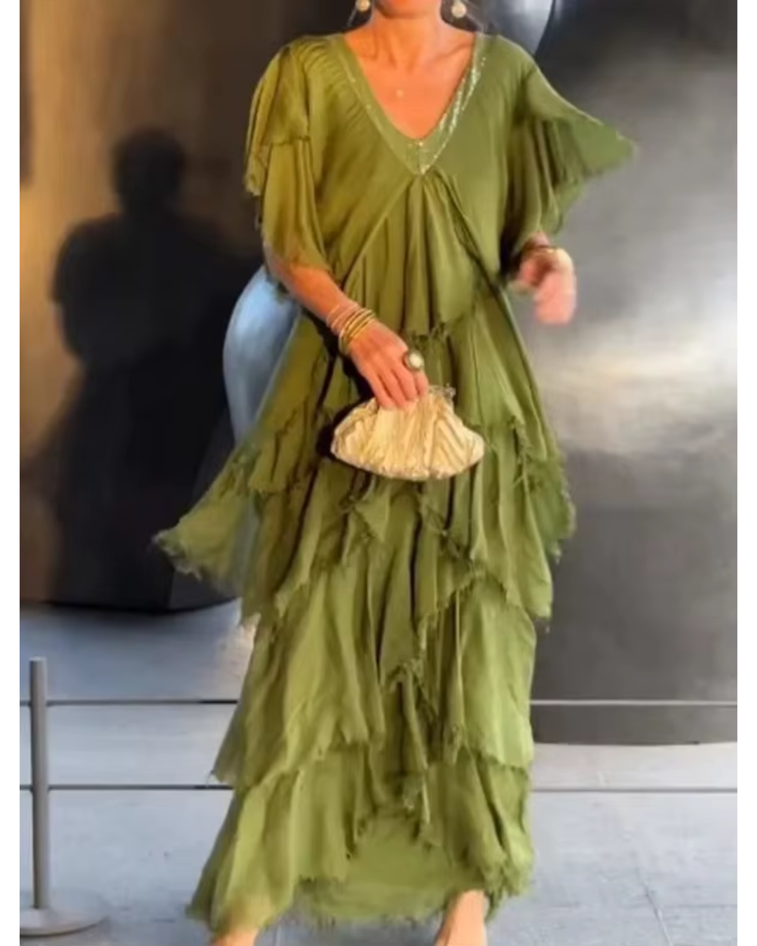 - Elegante escote en V: un corte sofisticado que realza su belleza natural.